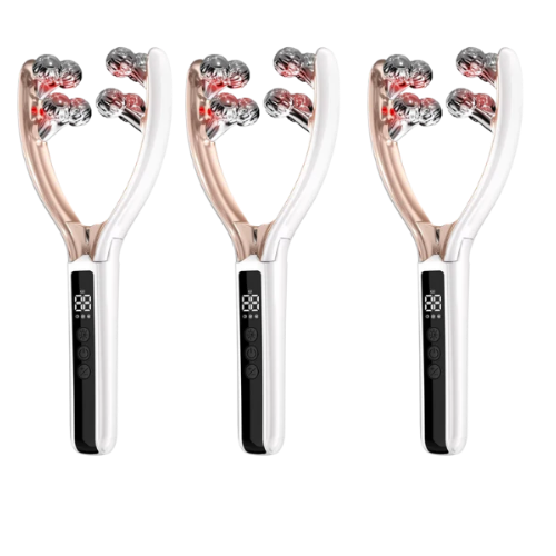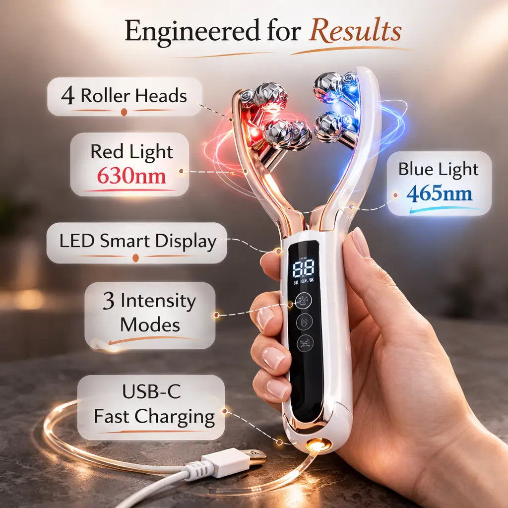 That puffy, undefined face staring back at you every morning? It's trapped fluid. The V-shape dual rollers follow your lymphatic pathways and physically push it out. One morning session and you'll see the difference before you finish your coffee